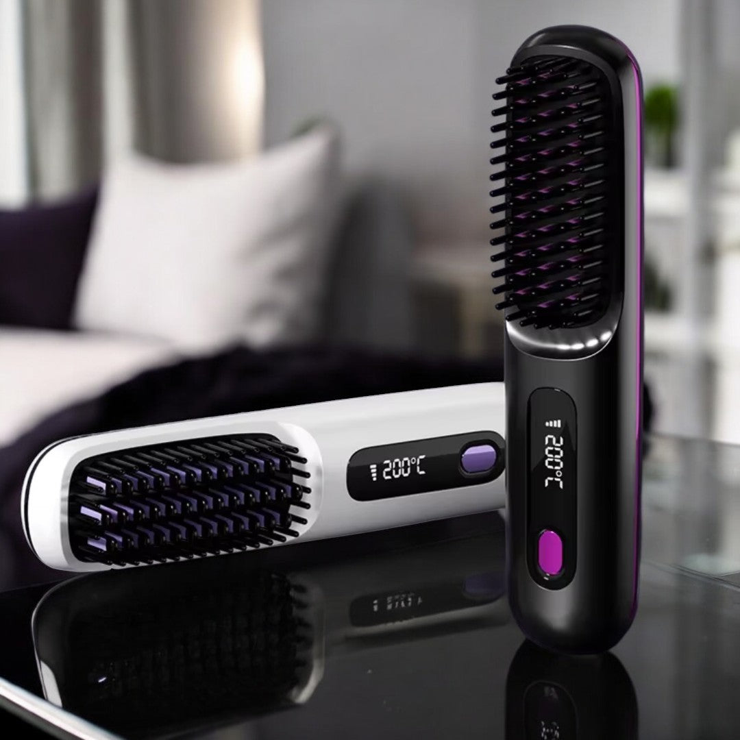 Style your hair with our wireless heated straightening brush! Designed for on the go convenience, it combines the power of a flat iron with the ease of a brush, delivering sleek, frizz-free results in minutes.